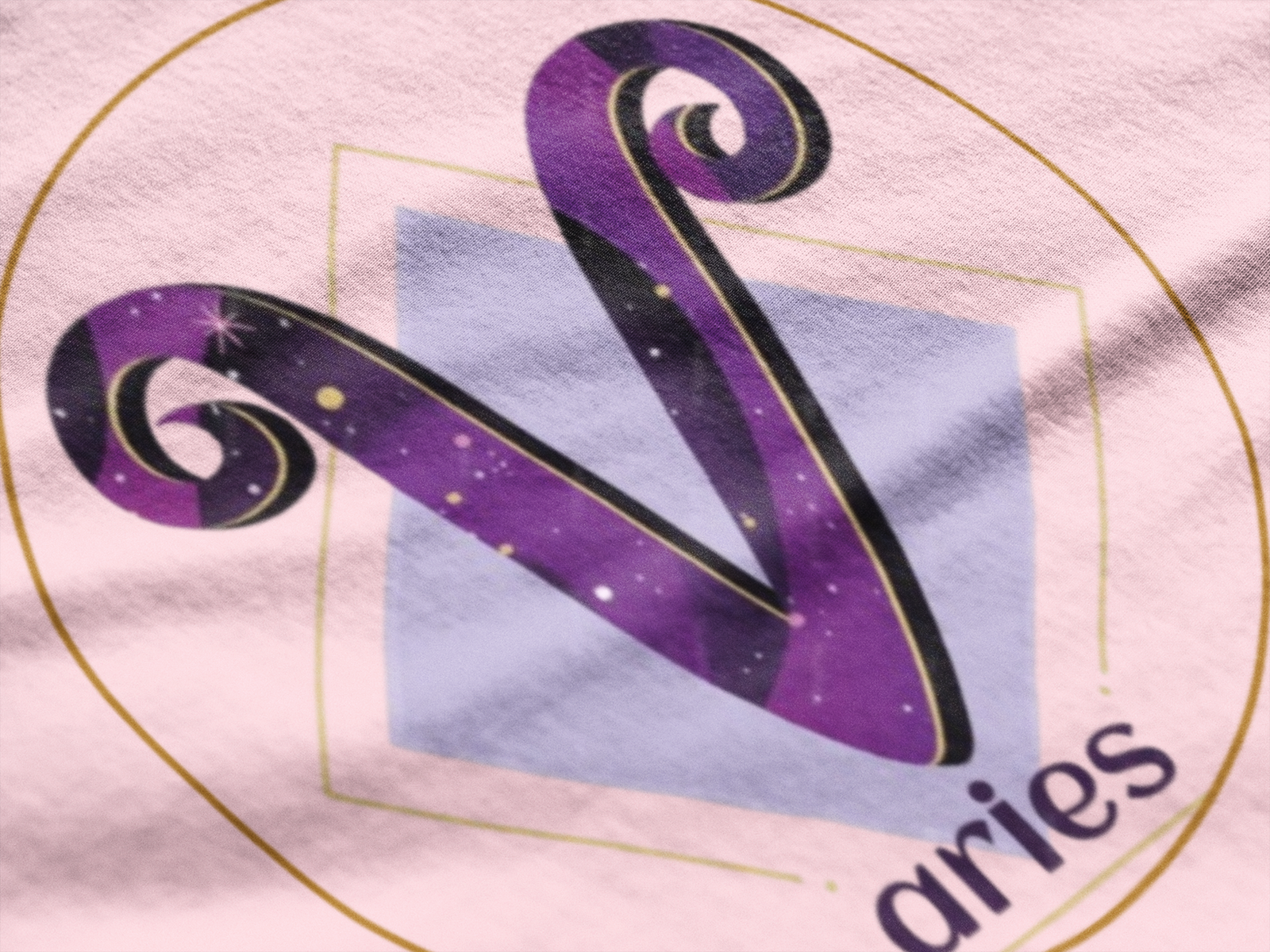 - Elegant Aries Design: Features a sophisticated Aries symbol with a cosmic, purple-themed aesthetic, perfect for astrology lovers.