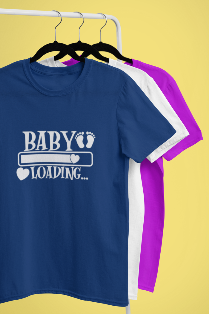 - Adorable Baby-Themed Design: The t-shirt features a charming “Baby Loading…” design with cute baby footprints, perfect for celebrating pregnancy and impending parenthood.