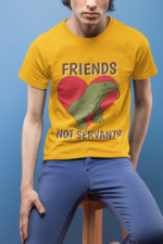 - Bold & Meaningful Message – Features the phrase “Friends, Not Servants” with an eye-catching frog design to promote kindness towards animals.