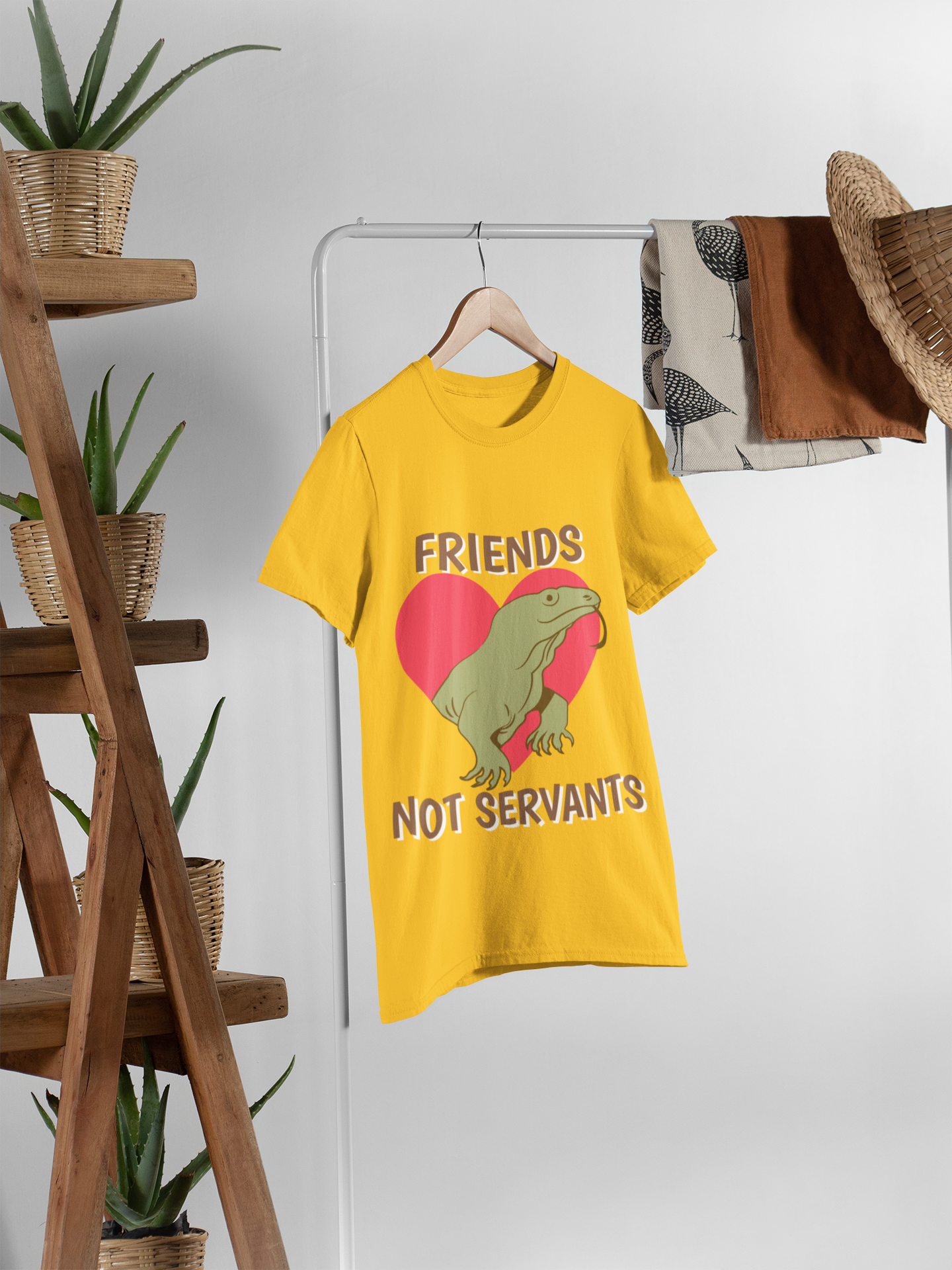 - Bold & Meaningful Message – Features the phrase “Friends, Not Servants” with an eye-catching frog design to promote kindness towards animals.