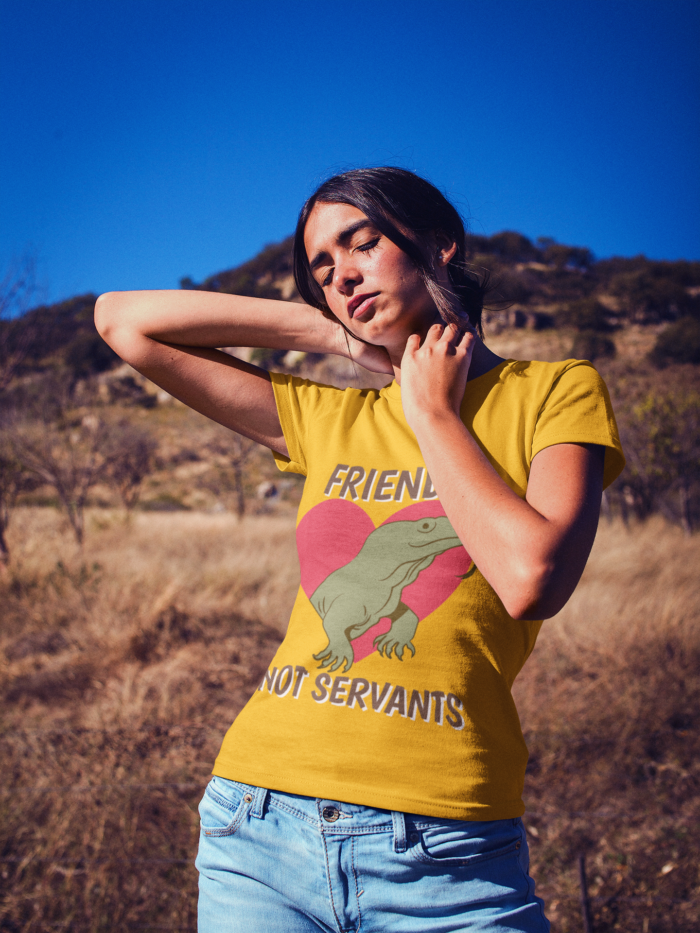 - Bold & Meaningful Message – Features the phrase “Friends, Not Servants” with an eye-catching frog design to promote kindness towards animals.