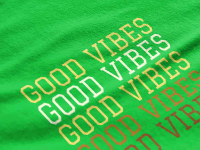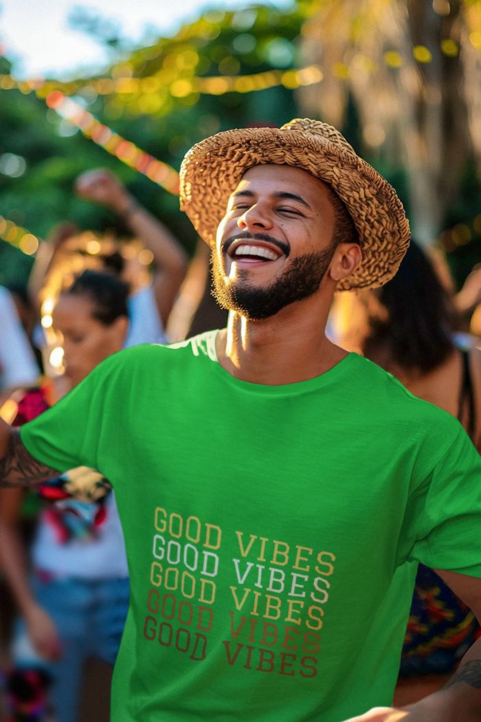 - Vibrant Design: Features a bold “Good Vibes” print in a stylish gradient effect.