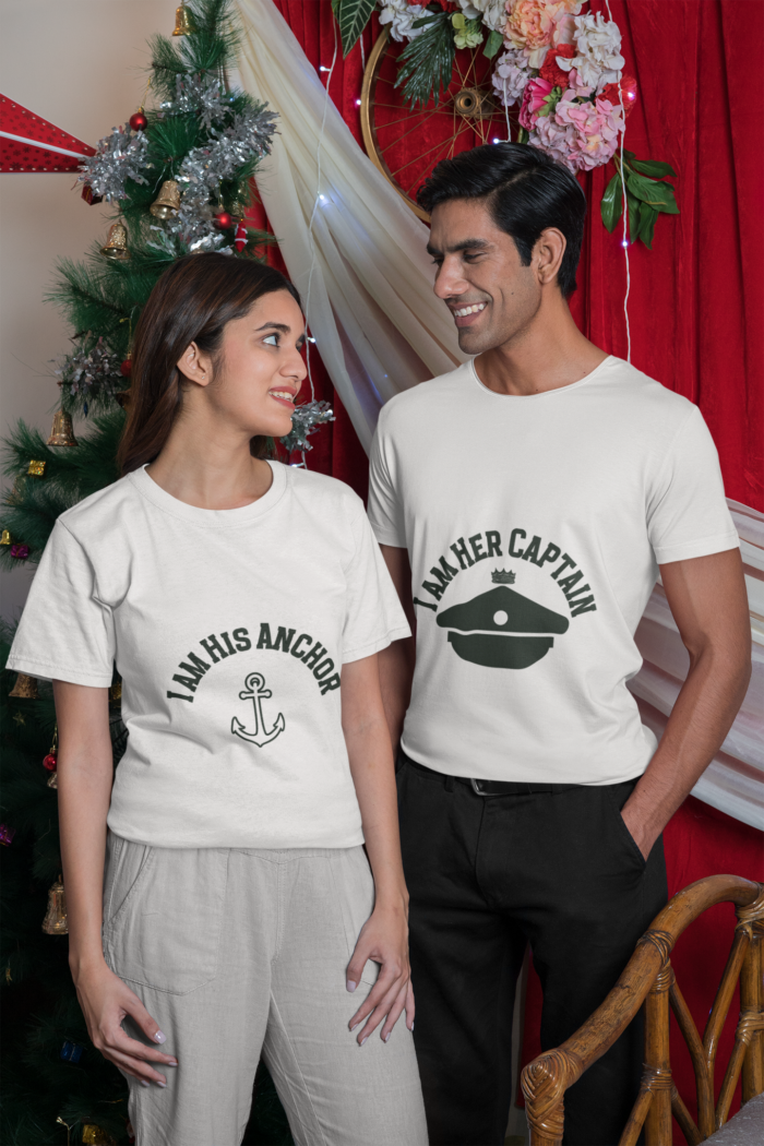 Great to pair with the “I AM HER CAPTAIN” tee for coordinated couple outfits.