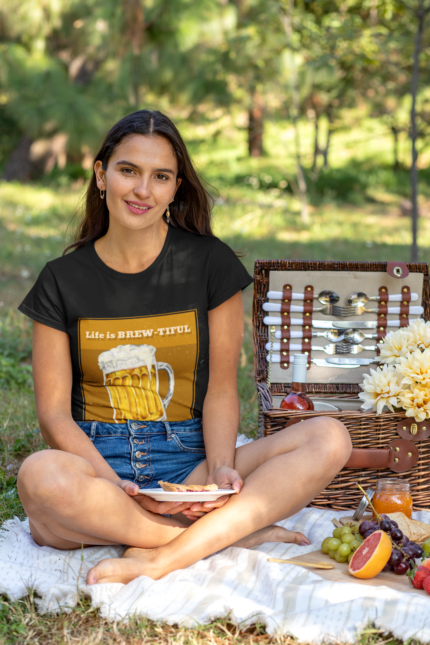 - Beer Lover’s Delight – Features a vintage-style beer mug print with the witty phrase “Life is BREW-TIFUL.”