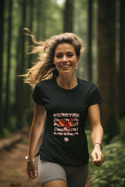 Zodiac-Inspired Design – This black T-shirt features a stylish “Rooster” zodiac theme, perfect for those who resonate with the Rooster’s traits.