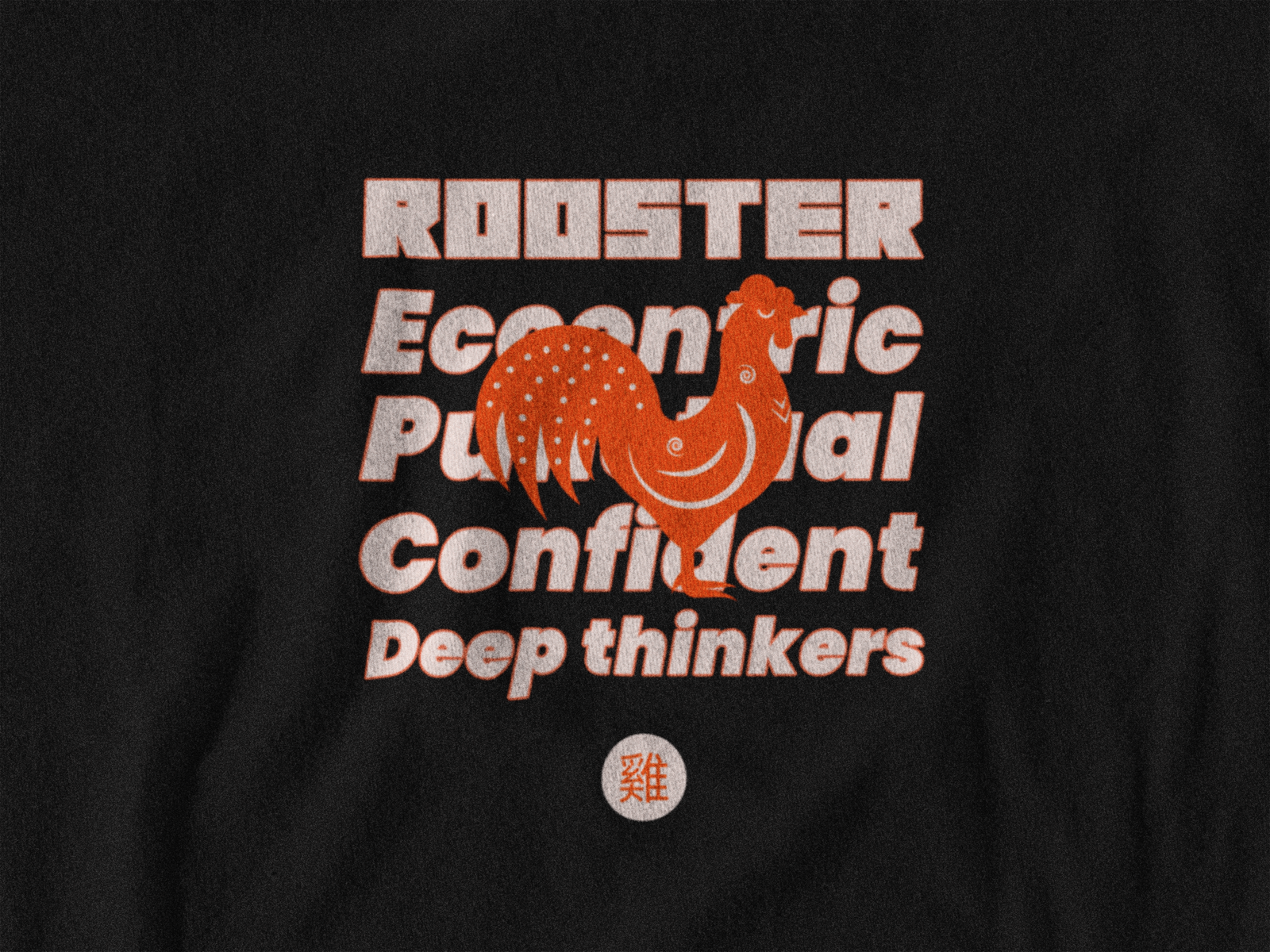Zodiac-Inspired Design – This black T-shirt features a stylish “Rooster” zodiac theme, perfect for those who resonate with the Rooster’s traits.