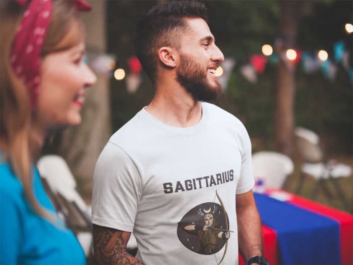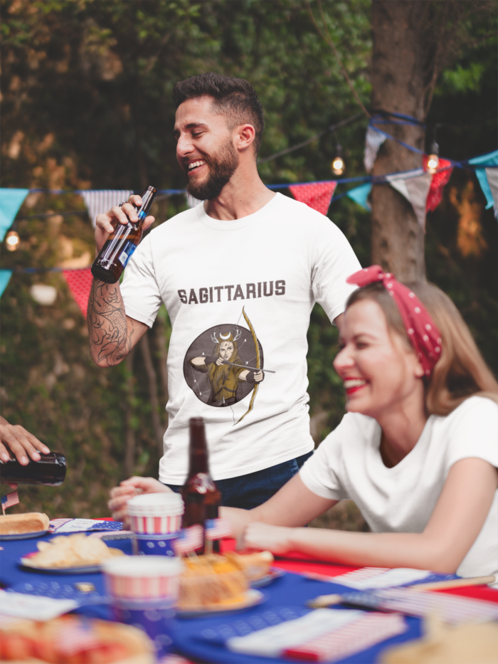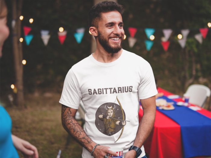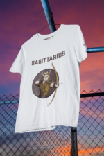 Zodiac-Themed Artwork – This T-shirt features a bold Sagittarius design with an archer illustration, perfect for astrology lovers.