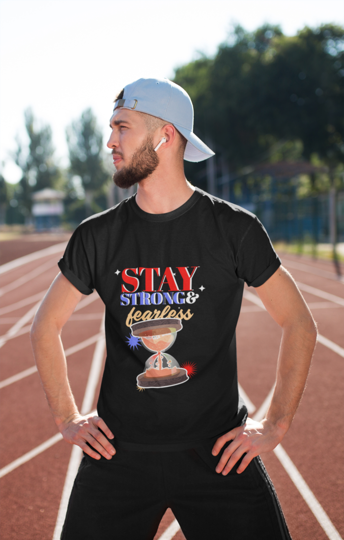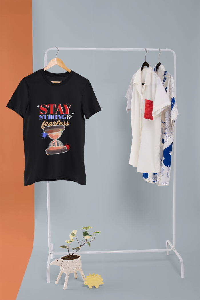 - 💪 Motivational Design – Features an empowering “Stay Strong & Fearless” message with a creative hourglass illustration, symbolizing resilience and determination.